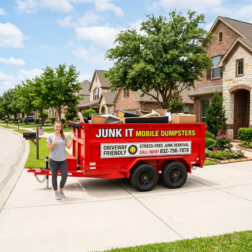 Welcome to the world of dumpster rental League City, but not the way you’re used to seeing it. We’re talking about Junk It Mobile Dumpsters, where we treat your driveway like it’s our own.