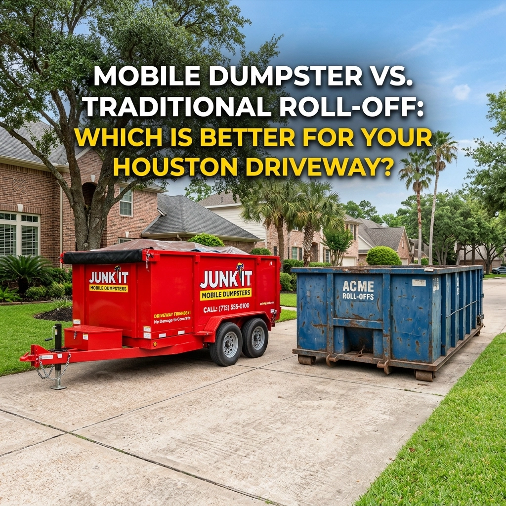 At Junk It Mobile Dumpsters, we’ve spent two decades perfecting the art of the "stress-free drop-off." Whether you’re in Pearland, League City, or anywhere in the greater Houston area, we’re ready to help you reclaim your space without wrecking your driveway.