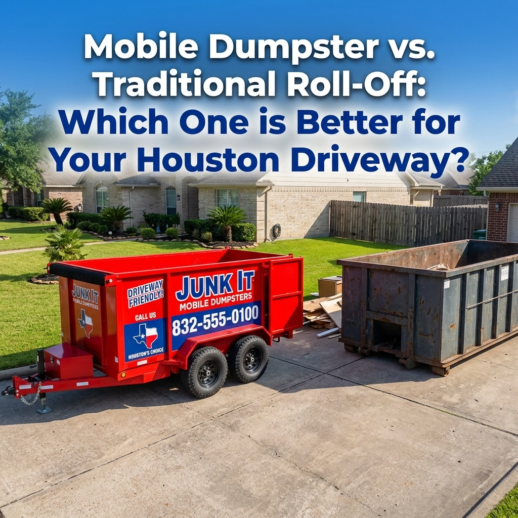 In the world of Houston waste management, you’ve got two main choices: the traditional roll-off dumpster or the modern, sleek mobile dumpsters. Which one is better for your property? Spoiler alert: We’re biased, but we’ve got the receipts to prove why.