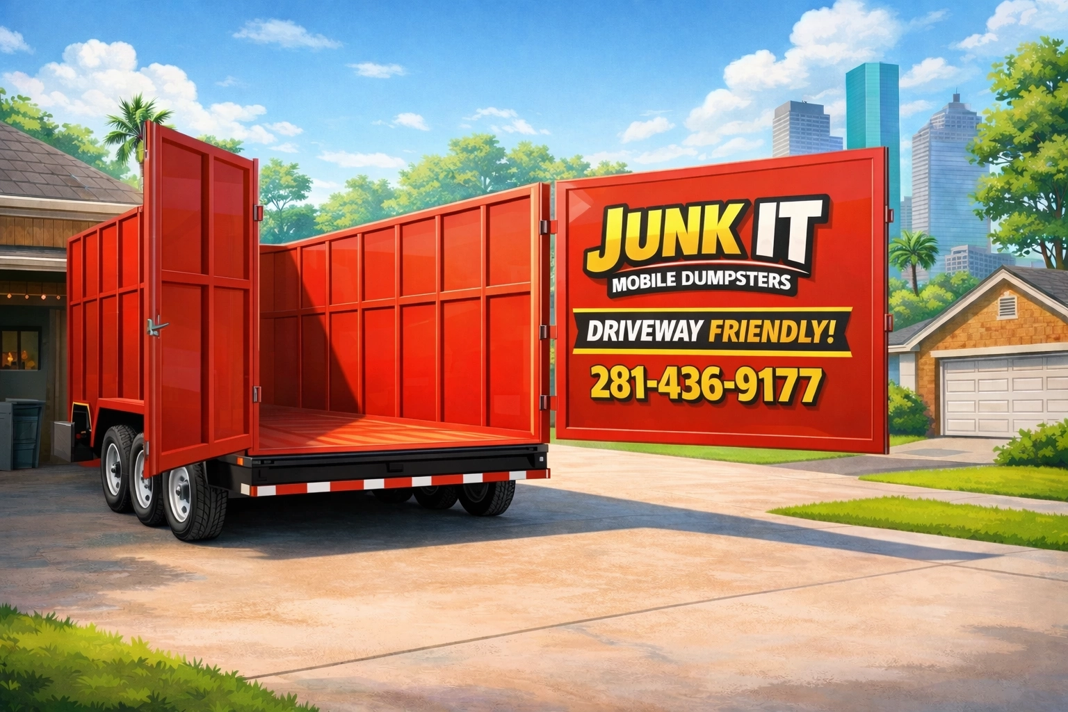 At Junk It Mobile Dumpsters, we do things differently. We provide mobile dumpster units that are essentially high-capacity trailers on rubber tires. Why does this matter? Because while the city is debating which truck to send to your house, we’ve already dropped off a driveway-safe solution that you can fill on your own terms.