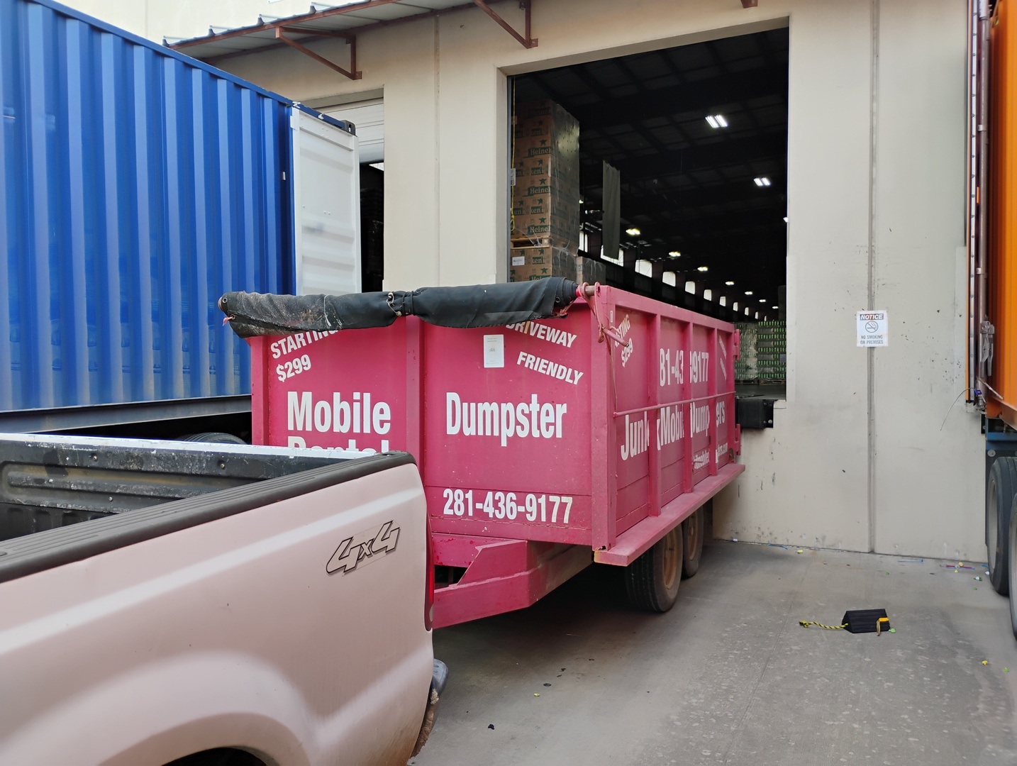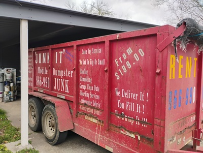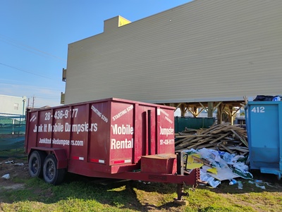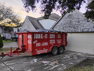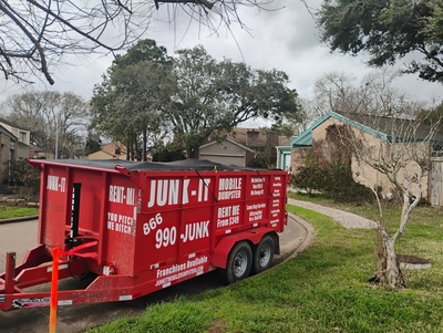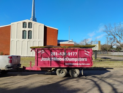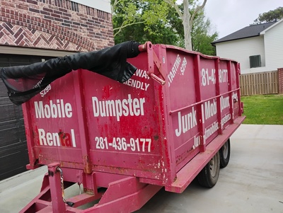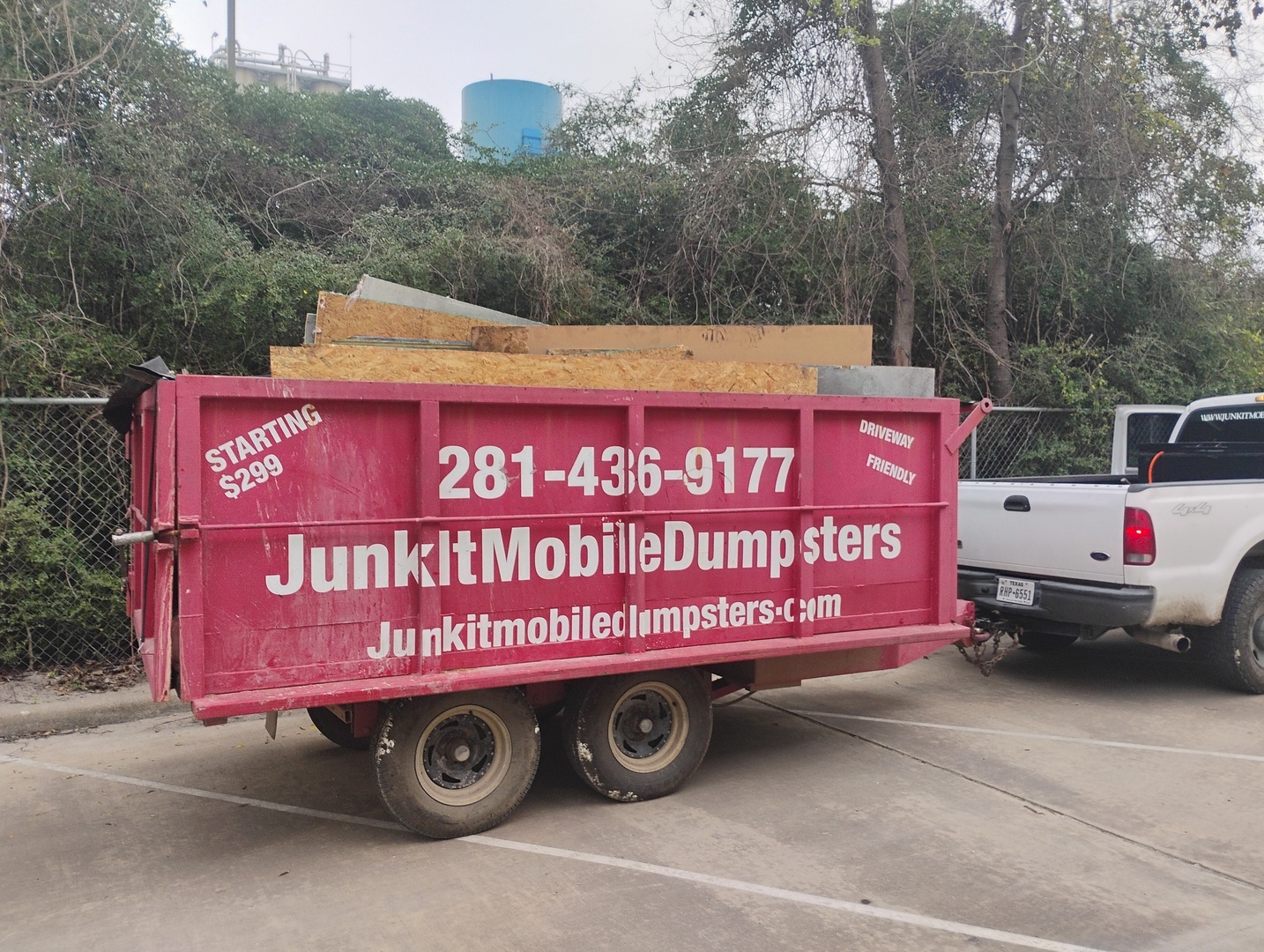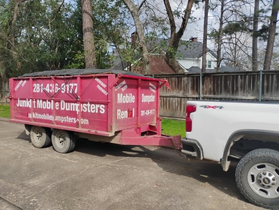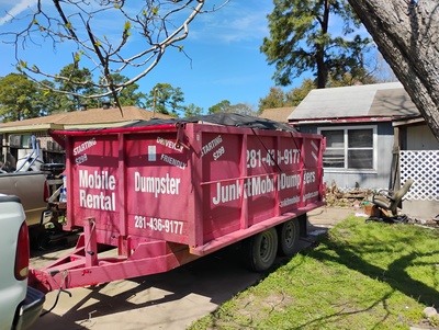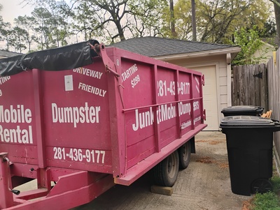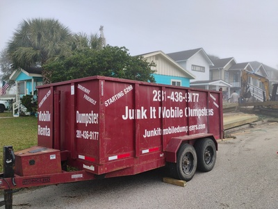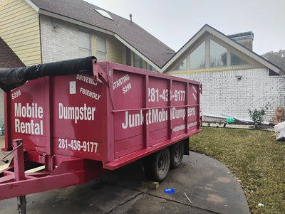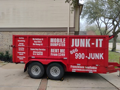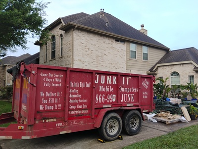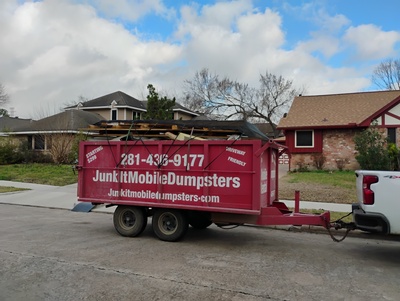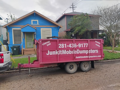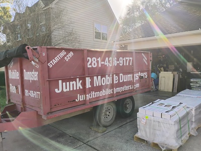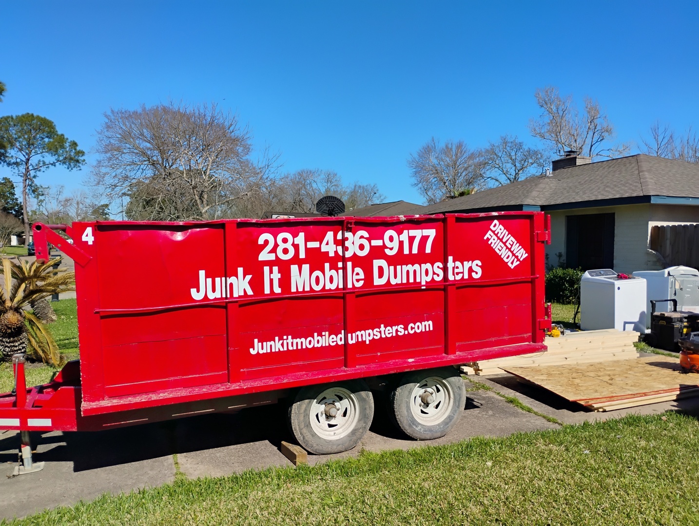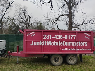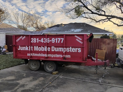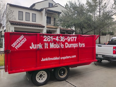 Junk It Mobile Dumpsters is the company to call when you need dumpster rental services in Houston that are timely, effective, and reasonably priced. We are renowned for our same-day drop-off and pick-up services, which are dependable and efficient. We cooperate with you to meet your schedule and space needs since we recognize how important a clean environment is to you. We have made a name for ourselves as Houston's preferred trash rental company because to our exceptional customer service. For many years, we have successfully supplied mobile dumpsters to commercial construction sites. For construction cleanup, we provide a range of dumpster sizes so you can get rid of all the material you need at once. The staff at Junk It Mobile Dumpsters is aware that each cleanup job is different. You might be in the middle of remodeling your house, decluttering your home, or having a yard full of unwanted items that need to be rid of. We don't put many restrictions on our dumpster rentals; we keep them basic. When renting one of our dumpsters, we ask that you not dispose of paint, household chemicals, or food waste.We may remove appliance tires that contain freon or coolant for an extra charge. We often rent out spaces for three days to a week. We will accommodate you if you require the dumpster rental in Houston to be picked up earlier. We care about the whole pleasure of our clients, which is why we maintain fair charges. Get in touch with us right now to find out more about the various dumpster sizes that are offered and to begin clearing the debris from your area.All you have to do when working with our crew is fill up one of our reasonably priced dumpster rentals in Houston with your trash, and we'll take care of the rest. We will come get the dumpster and properly get rid of your garbage once and for all. Please refrain from throwing food or liquids in our dumpsters. Freon-containing appliances and tires can be removed upon request and will incur an extra cost. Contact our staff right now if you have any special queries about the construction garbage, trash, or debris you are getting rid of. We'll be pleased to address any queries you might have and assist you in starting the process of decluttering your area.Get in touch with us right now to find out more about the various dumpster sizes that are offered and to begin clearing the debris from your area. We often rent out spaces for three days to a week. We will accommodate you if you require the dumpster rental in Houston to be picked up earlier. We care about the whole pleasure of our clients, which is why we maintain fair charges. Get in touch with us right now to find out more about the various dumpster sizes that are offered and to begin clearing the debris from your area.You will instantly receive a $25 discount on your dumpster rental when you mention our website! Not only that, but we'll offer you an extra $25 in savings if you write us a nice review.Our crew not only assists you in loading your dumpsters more swiftly, but we also load them more effectively. To make sure you are getting the most out of your space, our staff knows how to make the most of the space you have available in our dumpsters. Because our dumpsters are available in a variety of sizes, you can easily and hassle-free get rid of both big and little goods. Get in touch with Houston's junk removal professionals at Junk It Mobile Dumpsters if you require additional assistance packing up the items in your area.Our highly recommended junk removal crew makes cleanup projects go more smoothly than they have in the past. We guarantee that our teams arrive on time and provide exceptional customer service. Our staff will assist you in packing all of your trash into your dumpster rental before having it removed for an additional $100 to $150, depending on the size of the unit. Get in touch with us right now to reserve a dumpster rental with our full-service team! Our dumpsters can be useful whether you're cleaning out a house or apartment or are in the middle of a construction or renovation project. To have your dumpster delivered to your property, simply contact our team and let them know when you would like it dropped off. Call us again after you've loaded all the trash you want to get rid of, and we'll come get it and dispose of it safely.We maintain lower costs than all of our rivals here at Junk It Mobile Dumpsters! We also give our customers discounts as further evidence of our unwavering commitment to you. Simply mention our website when you give us a call to rent a dumpster, and we'll automatically deduct $25 from the cost of the rental! Not only that, but we'll give you an extra $25 in savings if you write us a positive review. You can save $50 on your subsequent dumpster rental!